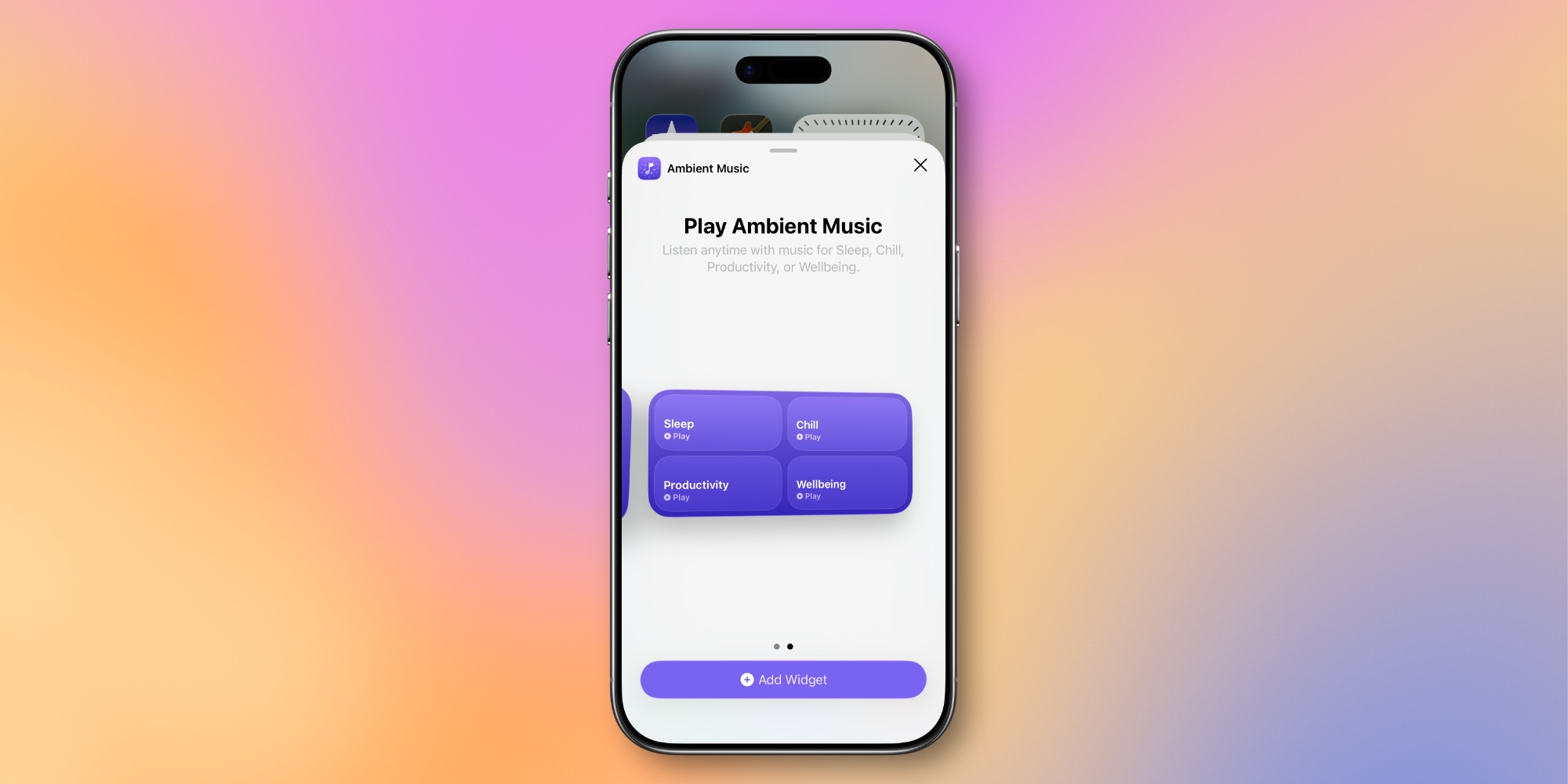 Ahora en iOS 26.4, la misma función de música ambiental está disponible a través de un nuevo widget en la pantalla de inicio. Hay disponibles widgets de tamaño pequeño y mediano.
