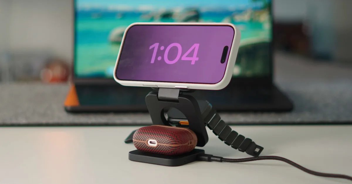 He estado usando este cargador como cargador principal de mi mesita de noche durante aproximadamente dos semanas y marca todas las casillas. Algunas cosas realmente me llamaron la atención. La primera es la versatilidad. Puede utilizar este cargador en diferentes modos y entornos. Por ejemplo, puedes plegarlo completamente y usarlo como un único cargador tipo MagSafe Pak para cargar tu iPhone. Puedes desplegarlo para usarlo como soporte y cargar hasta tres dispositivos mientras tu iPhone está en modo de espera. Finalmente, a diferencia X40 TurboÉste puede quedar completamente plano. Incluso si tu teléfono no es compatible con MagSafe, aún puedes usarlo con este cargador. Una última característica de calidad de vida que noté Airpods El cargador tiene imanes que ayudan a alinearlo cuando lo deja. Si tienes un par de AirPods modernos, tienen imanes MagSafe. Así que combínalo con el imán del cargador y nunca tendrás problemas de alineación al dejarlo.
