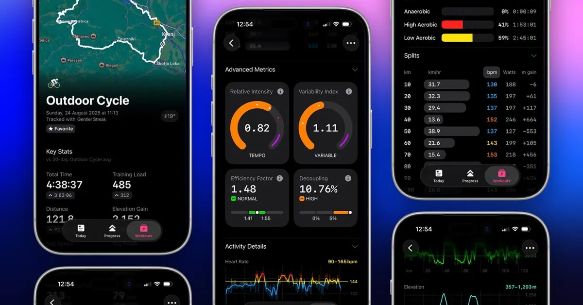 Gentler Stories dice que “estas métricas están disponibles para paseos y carreras junto con datos de energía, puede encontrarlas en el resumen de la sesión”, y agrega que “las métricas avanzadas son parte de External Absolute”, su plan de membresía que ofrece opciones mensuales, anuales y de por vida.