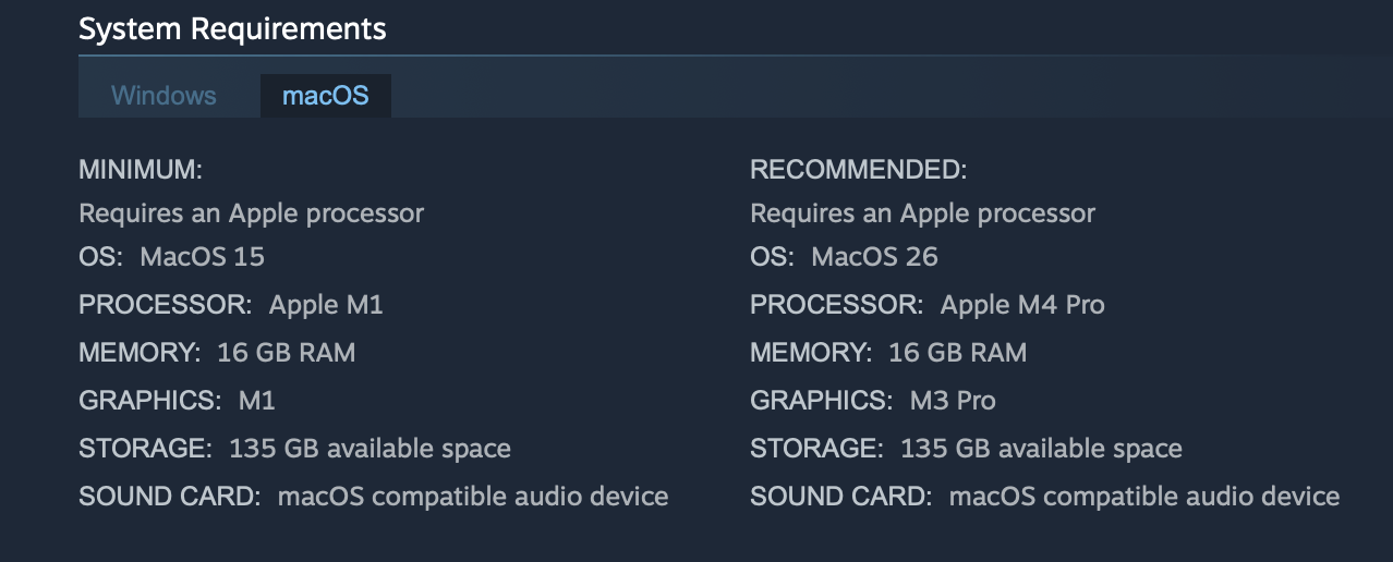 Destacó específicamente cómo el juego “utilizará potentes tecnologías de software como MetalFX Upscaling para acelerar el rendimiento y ofrecer imágenes de alta calidad, además de aprovechar las familias de chips M3 y M4 con trazado de rayos para una experiencia impresionante”.