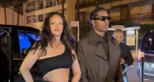 La embarazada Rihanna muestra el bulto de su bebé con un...
