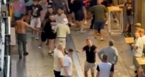 Las imágenes de video mostraron a los fanáticos de Man United...