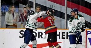 Ligas de hockey femenina profesional luchando contra Bruttle de los brutales...