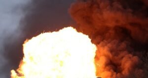 Lories obligado a arder cuando el enorme fuego arde sobre el...