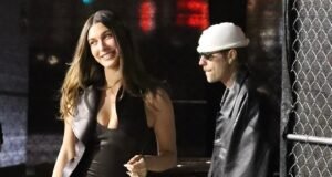 Justin Bieber se esconde detrás de la esposa Hailey mientras deja...