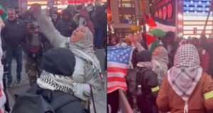Manifestantes antiisraelíes piden una “revolución intifada” en Times Square de Nueva...
