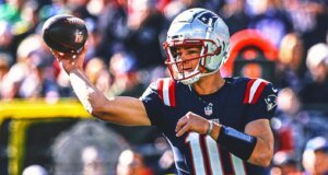El mariscal de campo de los New England Patriots, Drake May, recibe rumores de...