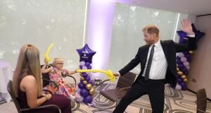 El príncipe Harry peleando en los premios Welchild después de visitar...