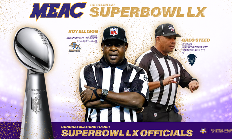 NORFOLK, Va., 9 de febrero de 2026 – La Conferencia Atlética del Medio Oriente (MEAC) celebra con orgullo a dos distinguidos ex alumnos de arbitraje de fútbol americano, Greg Steed y Roy Ellison, quienes sirvieron en el equipo de árbitros del Super Bowl XL y otro hito en la administración de impacto de ACME en sus jugadores consumados. etapa identificada