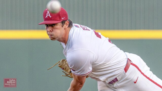 Continuaría ponchando a 7 en un tramo de 8 turnos al bate para derrotar a los Razorbacks muy rápidamente.