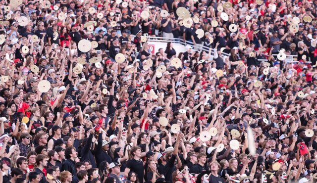 Miembros de agencias estudiantiles de Texas Tech Red Raiders en la primera mitad del juego contra Kansas Joyhox en el Jones AT&T Stadium. (Michael Sea Johnson/Imagen Imagen)