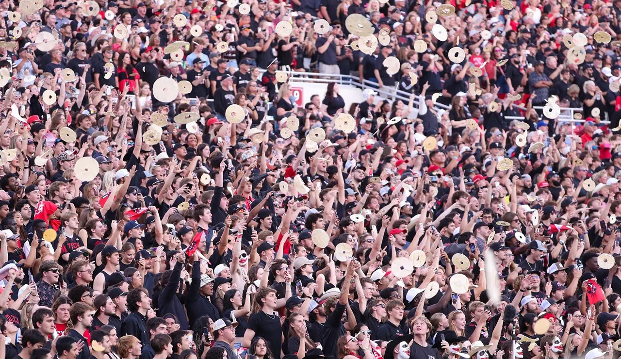 Los fanáticos de Texas Tech despidieron a Tortillus antes de jugar un partido de fútbol de la conferencia Big 12 el sábado 11 de octubre de 2025 en el estadio Jones AT&T en Lubak, Texas. (Nathan Giz / Himsagar-Jarnal / Imagen de la red USA Today Fig.)