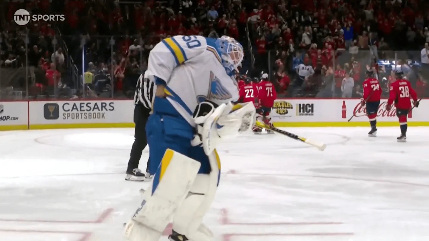 Mientras Ovechkin celebraba el momento histórico con sus compañeros de los Capitals, Binnington tenía sus propios planes después de marcar el histórico gol. El portero de los Blues fue captado por la cámara patinando con el recién preciado disco en su guante y escondiéndolo en sus pantalones.