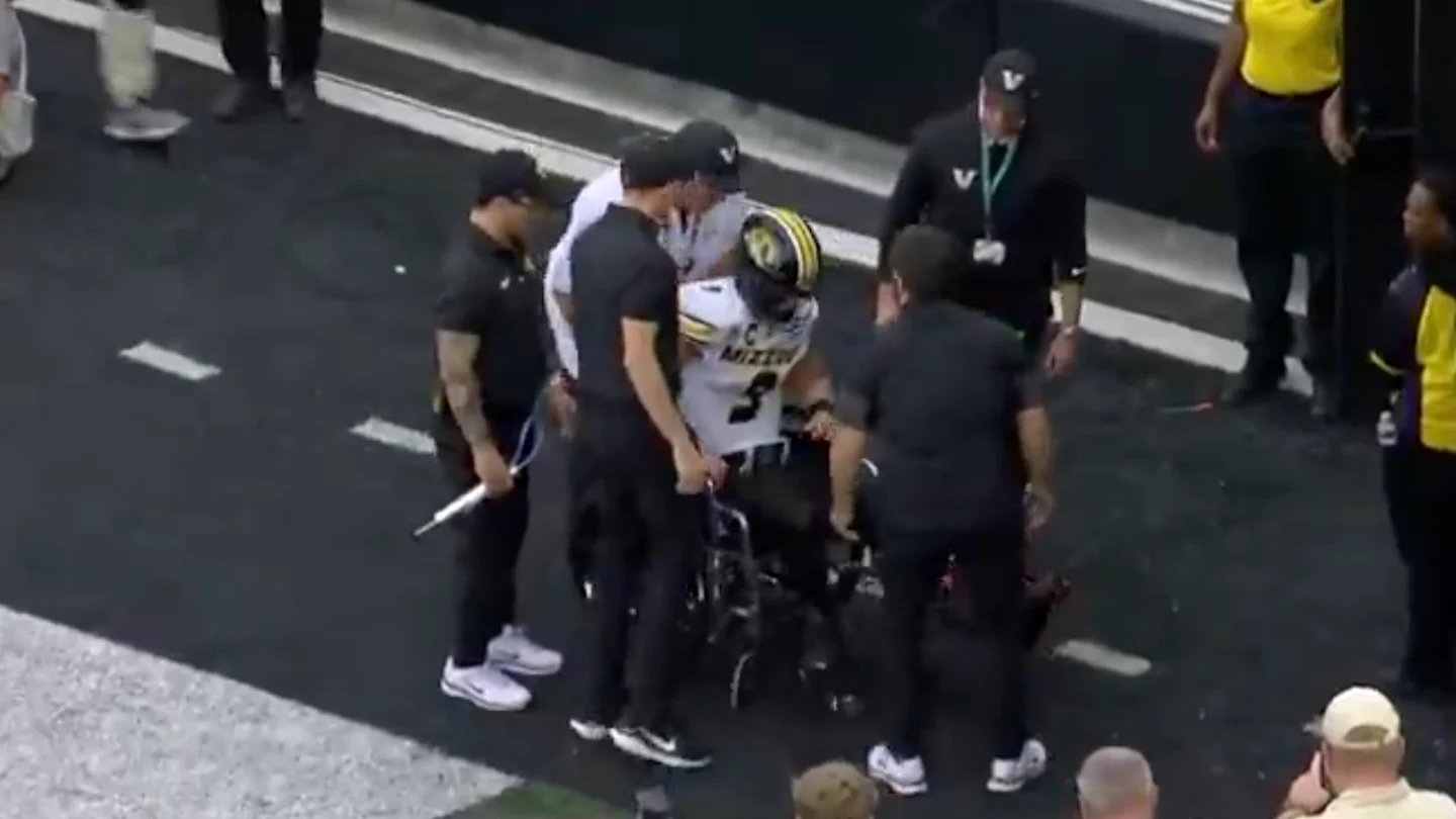 El mariscal de campo de Missouri, Beau Prybula, fue sacado del campo en una silla de ruedas y con un yeso en la pierna durante el enfrentamiento de Vanderbilt del sábado.