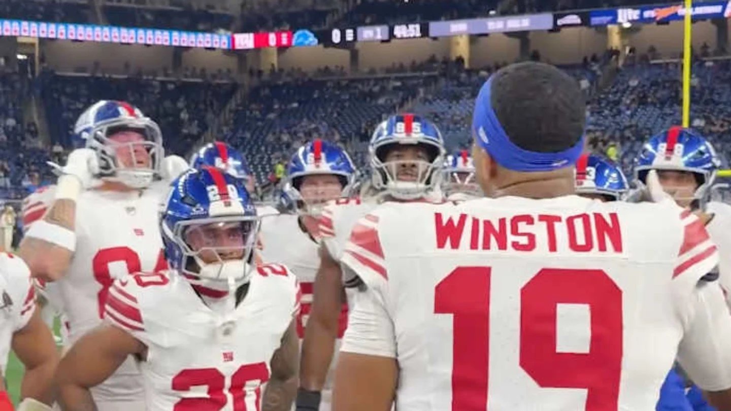 Jameis Winston hizo su segunda apertura de temporada para los Giants el domingo contra los Lions y, como es su costumbre, pronunció un intenso discurso previo al juego. Esta vez las cosas se pusieron un poco raras.
