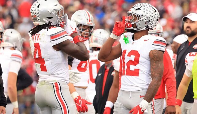 No hay WR Cornell Tate de Ohio State, no hay problema. El mariscal de campo de los Buckeyes, Julian Sayin, lanzó para 303 yardas con un touchdown y una intercepción, mientras que el receptor abierto de Ohio State, Jeremiah Smith, atrapó 10 pases para 137 yardas y un touchdown.