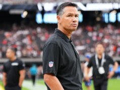 El equipo de Europa, Shane Lori, reaccionó después de la mitad del hoyo en Europa, y la Copa Rider en el campo Negro en el campo de golf Bethpage State Park el 28 de septiembre de 2025 en Nueva York, puede mantener la Copa Rider en la 18ª Copa Verde 18 ° Green. (Mike Stob/Getty Fig.)