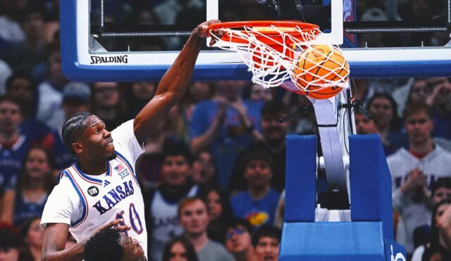 Flory Bidunga culminó una potente volcada fuera de límites, ampliando la ventaja de Kansas sobre Utah