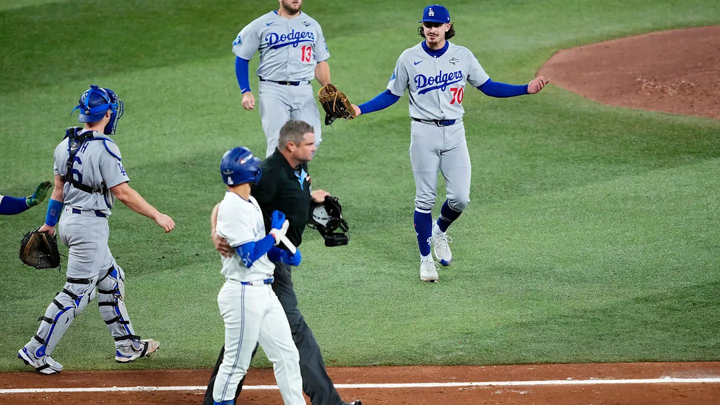 Tanto las bancas de los Dodgers como las de los Azulejos se vaciaron, e incluso los relevistas del dugout hicieron su trote ceremonial por el campo para acercarse al saque neutral.