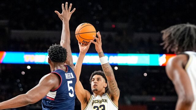 Las cosas fueron especialmente incómodas en la primera parte. Lendborg jugó los 20 minutos completos, pero anotó sólo cuatro puntos con 1 de 5 tiros (incluidos un par de fallos feos), sin rebotes y sin asistencias. Él mismo era un caparazón, una de las razones por las que Michigan tuvo dificultades para alejarse. Al salir de la cancha, le dijo a Tracy Wolfson de TBS que jugó “muy suave”. En el entretiempo, Lendborg hizo un par de ajustes en su vestuario, agregando una manga blanca sobre esa problemática pierna izquierda y reemplazando las zapatillas de deporte color maíz y azul que había usado antes por un par de Air Jordans grises.