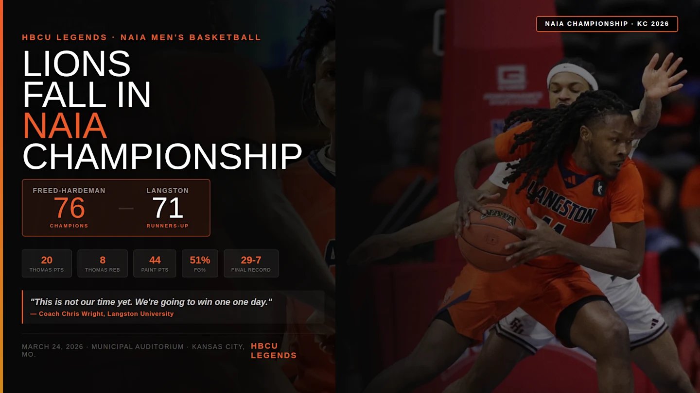 Kansas City, Missouri. – Los Leones de la Universidad de Langston libraron una dura batalla con Freed-Hardman, pero finalmente cayeron, 76-71, en el juego del Campeonato Nacional NAIA 2026 el lunes por la noche en el Auditorio Municipal de Kansas City.