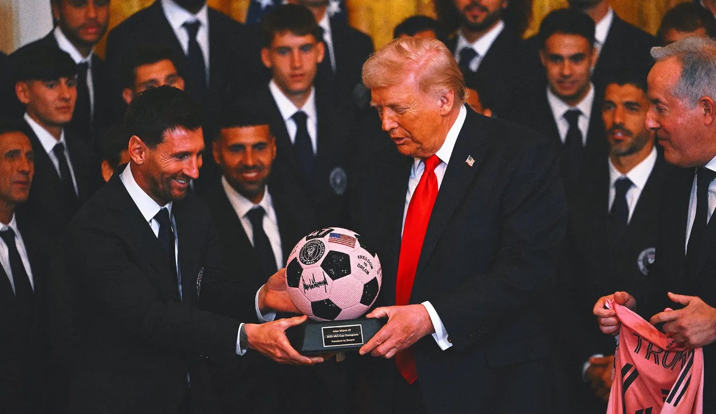 Lionel Messi entregó un balón de fútbol rosa enjoyado al presidente Donald Trump mientras honraba al Inter Miami por la victoria de la Copa MLS del año pasado en una ceremonia en la Casa Blanca.