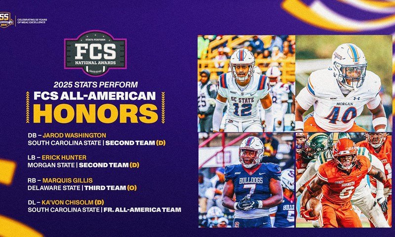 Cuatro estudiantes-atletas de la Conferencia Atlética del Medio Oriente (MEAC) obtuvieron reconocimiento nacional cuando Stats Perform anunció sus equipos FCS All-America y Freshman All-America 2025, destacando a los estudiantes-atletas talentosos de la conferencia, incluido el Jugador Defensivo del Año de MEAC.