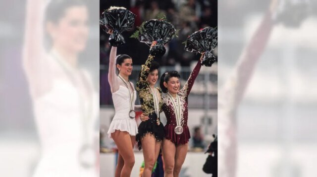 El 21 de febrero de 1992, Christy Yamaguchi de Estados Unidos ganó la medalla de oro en patinaje artístico femenino en los Juegos Olímpicos de Invierno de Albertville; La japonesa Midori Ito ganó la plata y la estadounidense Nancy Kerrigan ganó el bronce.