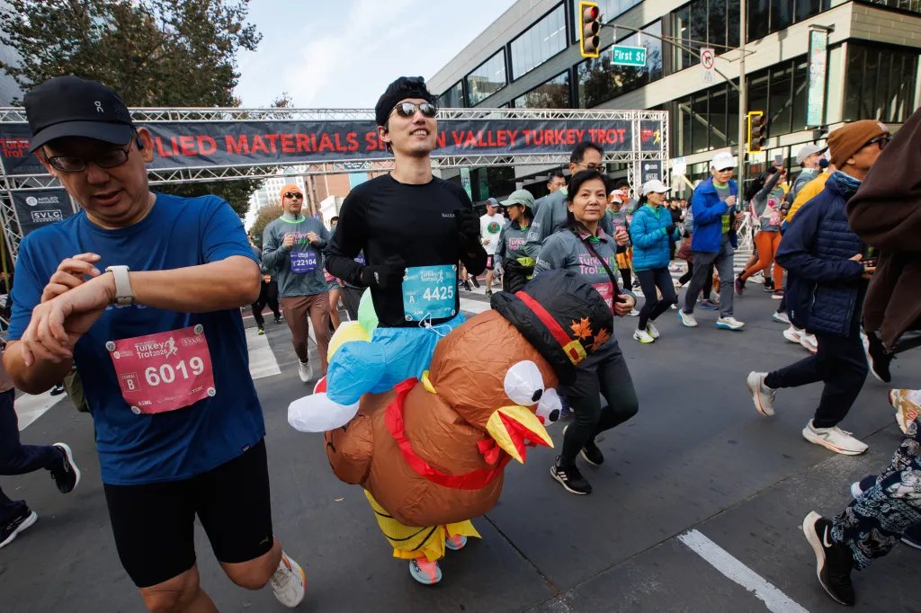 La 21.ª Trota Anual del Pavo de Silicon Valley de Materiales Aplicados se llevó a cabo el jueves en el centro de San José en una fría mañana de Acción de Gracias, donde casi 23.000 participantes calentaron participando en las carreras de 5 y 10 kilómetros.