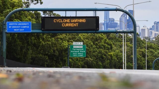 Una autopista vacía en Brisbane, Australia, advirtió sobre un Cyclone de Mark electrónico, viernes 7 de marzo de 2025. (Joan Cerell/AAP Fig a AP)