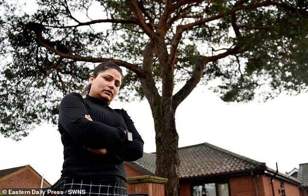 Rachna Anderson, de 41 años, dijo que desarrolló una dolorosa alergia al pino silvestre que se encuentra frente a su casa en Norwich, Norfolk.