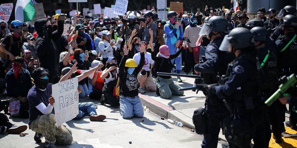 Los alborotadores han estado en enfrentamientos violentos con agentes de hielo, la policía de Los Angles y la Guardia Nacional, protestando para arrestar a docenas de inmigrantes no registrados el viernes.