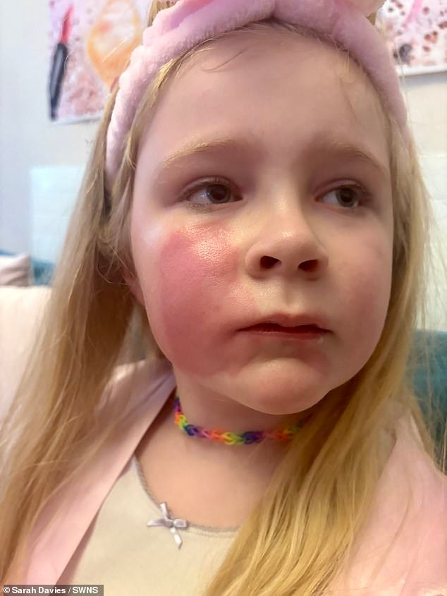 Sara Davis llevó a su hija de ocho años a un farmacéutico después de sufrir un doloroso erupción roja en respuesta al brillo de ‘plomado de labios’.