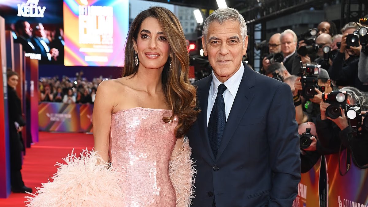 Amal Clooney se robó la atención con un deslumbrante vestido rosa de su marido George, mientras la brillante pareja llegaba al estreno en Londres de su película J. Kelly.
