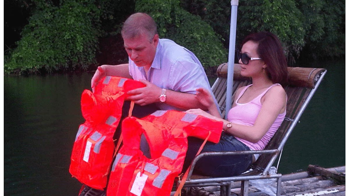 En la foto: un Andrew aparentemente desconocido disfrutando de un paseo en una balsa de bambú