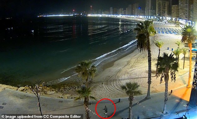El video recientemente publicado muestra que 30, que estaba de vacaciones en Benidorm con amigos, caminaba continuamente en la famosa playa del resort españolas unas horas antes de morir de 500 pies de acantilado.