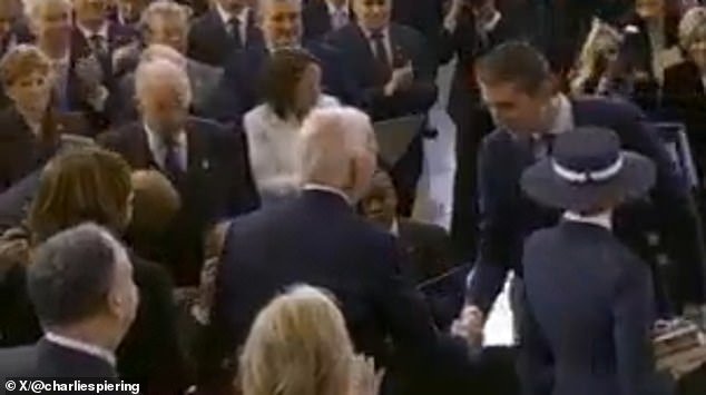 Barron Trump (derecha) llamado 'un verdadero caballero' por estrechar la mano de Joe Biden y Kamala Harris