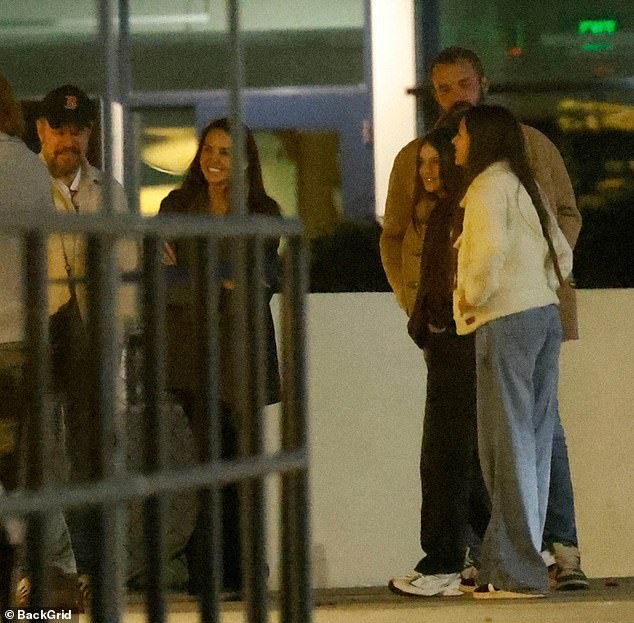 El actor, de 52 años, que se reunió con sus ex Jennifer López y Jennifer Garner en una obra de teatro el viernes, pasó tiempo con su amigo de la infancia Matt, de 54 años, su esposa Luciana y sus hijas Gia y Stella.