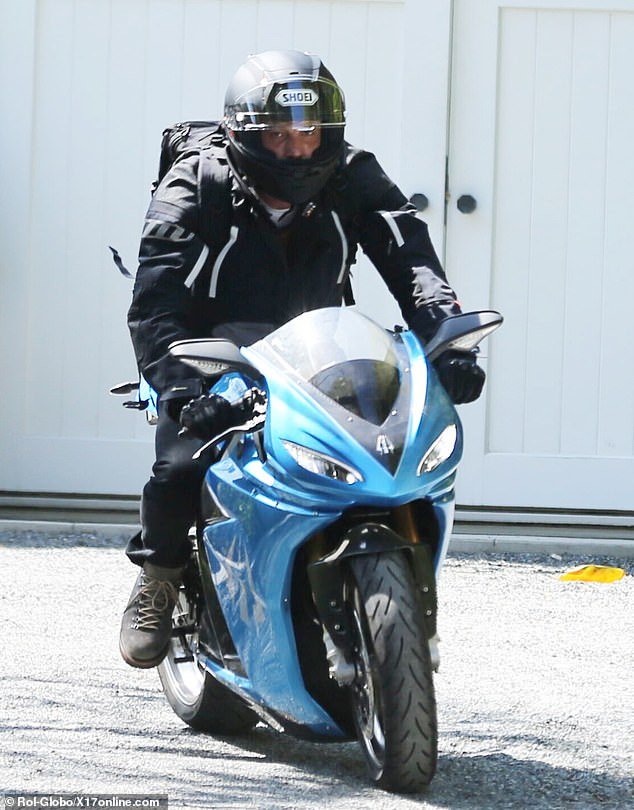 Fue visto viajando a su bicicleta en Brentwood. Llevaba chaquetas de motociclistas, cascos y jeans para el viaje.