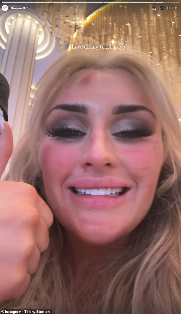 La diva diva Tiffany Straton aseguró a los fanáticos que su horrible lesión de lucha libre no fue tan mala como el primer miedo, pero todos sus dientes fueron compartidos al compartir todos sus dientes intactos.