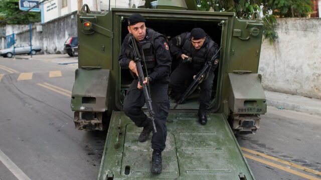 Durante la operación en la policía brasileña Río. Según la controvertida nueva ley, los oficiales pueden pagar más entre el 10 y el 150 por ciento de sus salarios mensuales ‘por su salario mensual para neutralizar a los delincuentes