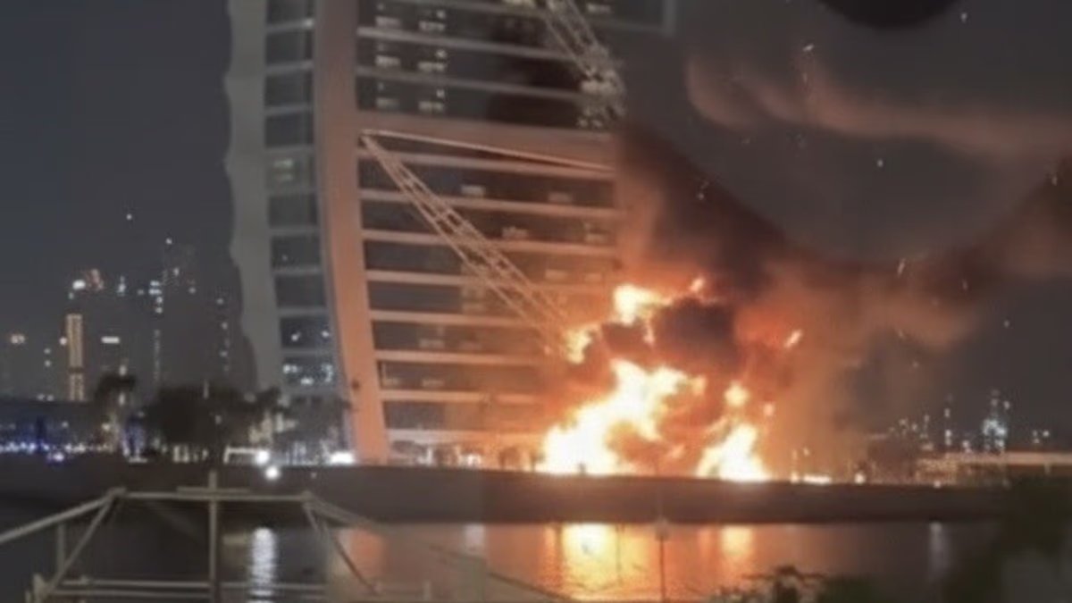 Se vieron fuego y humo en el lujoso hotel Burj Al Arab en las Islas Palm de Dubai.