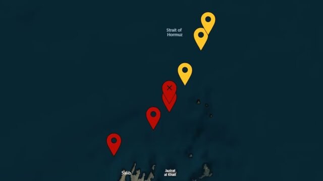 Un mapa que muestra el último ataque en el Estrecho de Ormuz informó a la UKMTO. El último ataque está marcado con una ‘X’