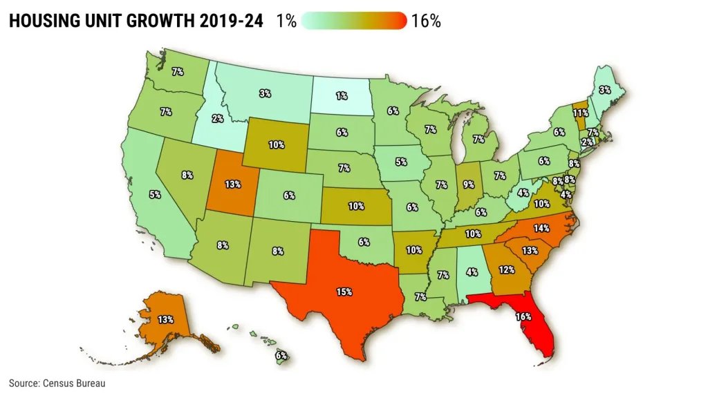 Las tasas de crecimiento más altas se encontraron en Utah y en el 16%en Florida y más tarde Texas e Idaho 15%.