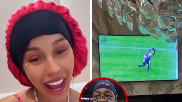 Cardi publicó un video desde la cama el domingo, que muestra su reacción al pase clave de cuarto intento de su novio en el juego New England Patriots vs. Tampa Bay Buccaneers… dándole a los Pats una ventaja de 14-10.