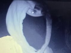 Vio confiado en el Jumpsut azul que estaba a tierra con ‘Perry’ y dijo ‘fuente azul’ en el brazo.