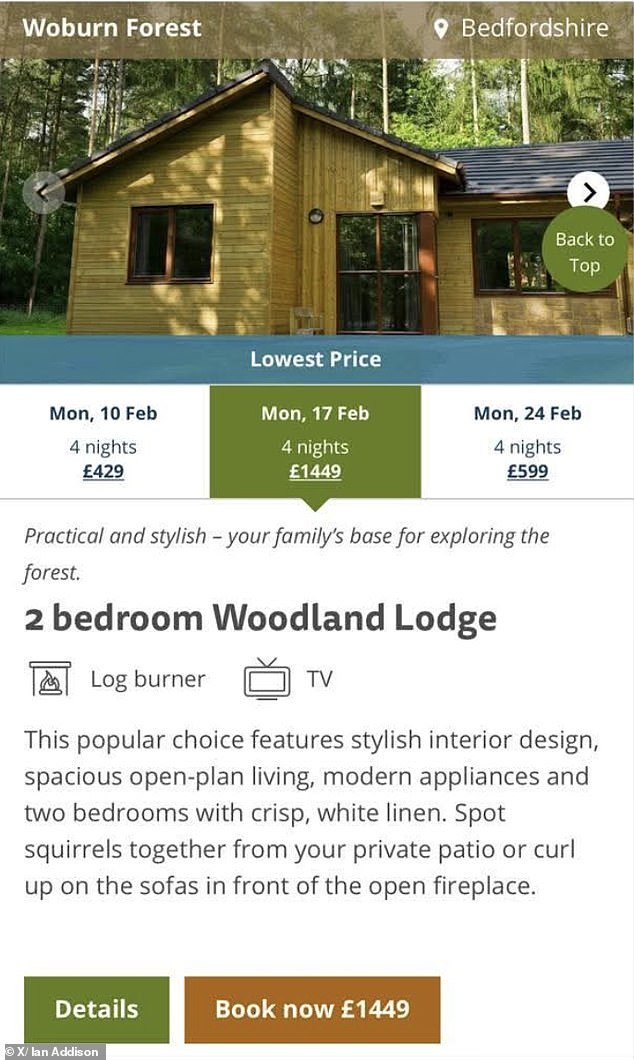 El padre quería reservar una escapada de cuatro noches en un albergue de dos habitaciones en el bosque en Center Parks de Bedfordshire, pero se sorprendió por la discrepancia reportada que algunos en línea calificaron de “loca” e incluso “criminal”.