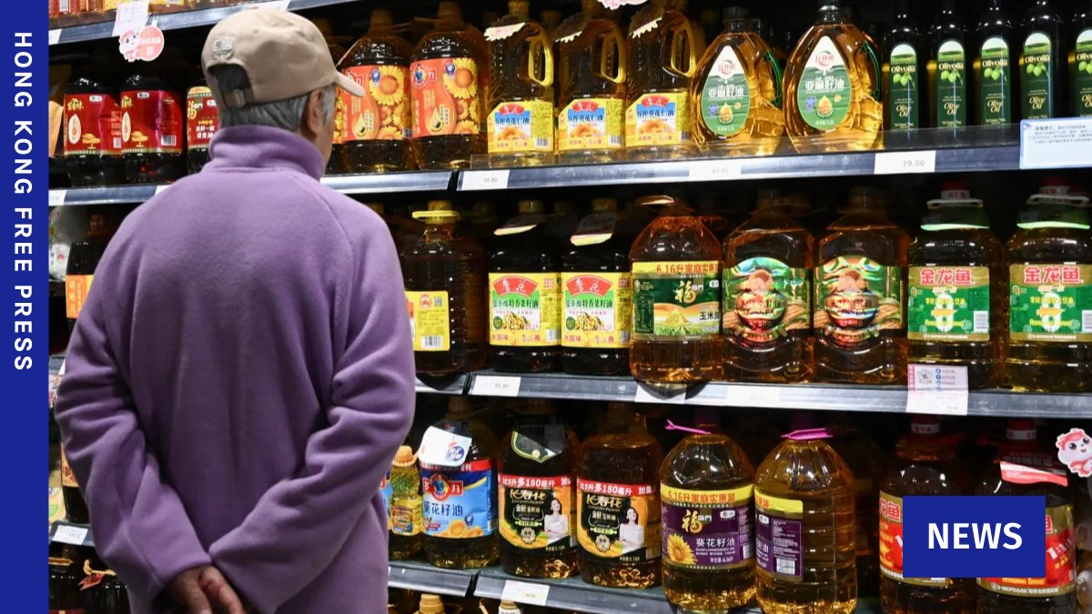 Un comprador observa la venta de aceite de cocina de diferentes marcas el 15 de octubre de 2025 en un supermercado de Beijing. Foto: Pedro Pardo/AFP.
