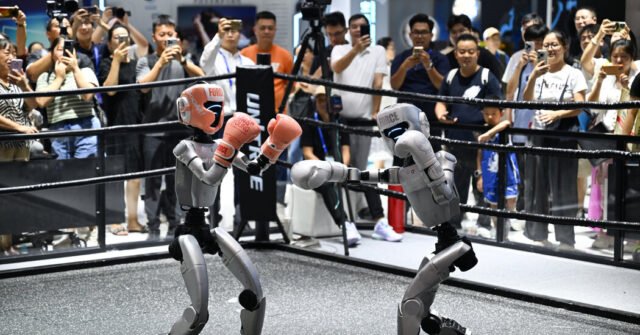 Los rusos, los funcionarios, los comerciantes y los medios de comunicación se convirtieron en los medios de comunicación, pero en el centro de China, la única actitud estadounidense en una enorme feria de comercio de alta tecnología era Elan Kasturi, o al menos su voz descendente, el video de Tesla lanzaba “robots humanoides”.