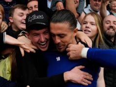 Urban tenía una chaqueta bronceada y una gorra gris en la cabeza junto con una camisa estampada negra.